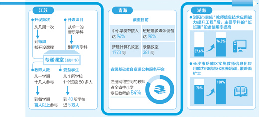 然而,要充分發(fā)揮教育信息化的優(yōu)勢(shì),還需實(shí)現(xiàn)信息化手段從“用起來”到“用得好”轉(zhuǎn)變。這就需要依靠培訓(xùn),使教育管理部門和一線師生的信息化素養(yǎng)同步提升。湖南多地實(shí)行四級(jí)培訓(xùn)制度:通過“國培計(jì)劃”等,培訓(xùn)中小學(xué)校長及教育主管部門人員;通過湖南省中小學(xué)教師信息技術(shù)應(yīng)用能力提升工程,培訓(xùn)信息技術(shù)骨干教師和專任骨干教師;通過組織電化教育館及高校等單位的專家學(xué)者赴基層,培訓(xùn)教育信息化基礎(chǔ)教師;培育出來的“種子教師”,為所在學(xué)校的科任教師普及教育信息化知識(shí)。