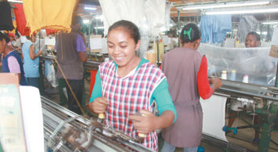 幾千名馬達加斯加員工正在工廠各車間辛勤工作,數(shù)千臺手動橫機左右搖動,編織成組合衣服的衣片;檢測組的白色燈柱前,女工認真地將羊絨衫的衣袖、大身在燈光下細細檢驗;蒸汽熨斗上下翻飛,男工們快速將絨衫熨好疊好、處理平整。