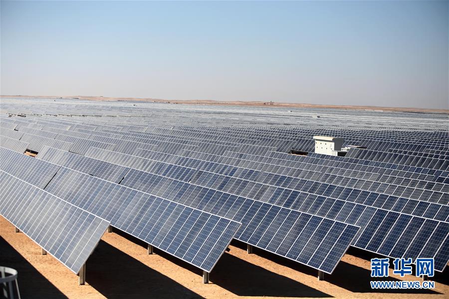 這是2019年3月18日在埃及南部阿斯旺拍攝的特變電工承建的本班光伏產(chǎn)業(yè)園。新華社發(fā)(艾哈邁德·戈馬攝)