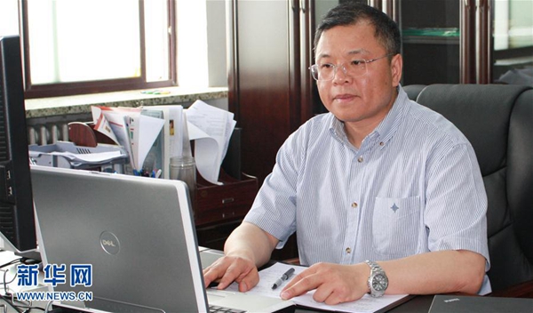 2010年6月1日,黃大年在辦公室內(nèi)工作(資料照片)。新華社發(fā)