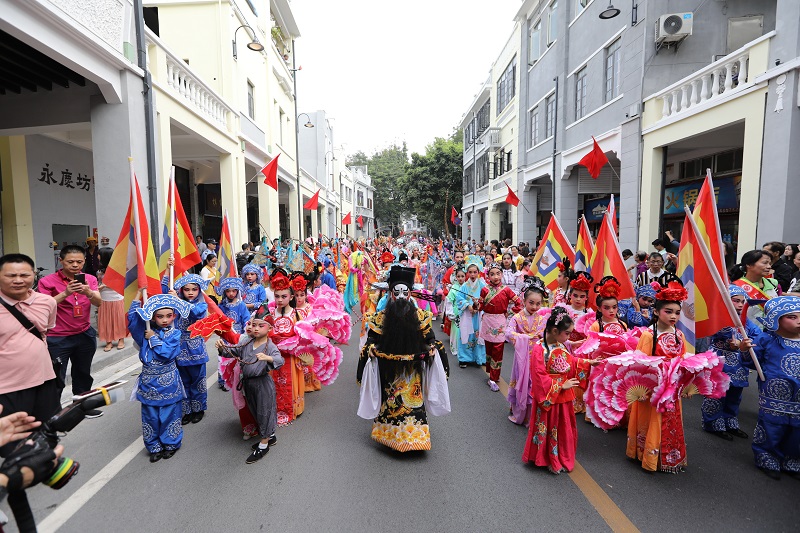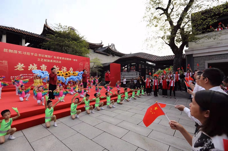 央廣網(wǎng)廣州10月24日消息(記者傅曉勤)10月24日,在習近平總書記視察廣州一周年之際,由中共廣州市委宣傳部、中共廣州市荔灣區(qū)委員會、廣州市荔灣區(qū)人民政府主辦,中共荔灣區(qū)委宣傳部、荔灣區(qū)文廣旅體局、荔灣區(qū)教育局、荔灣區(qū)文聯(lián)承辦的“老城市、新活力”——貫徹落實習近平總書記視察廣東重要講話精神一周年文藝展演系列活動在永慶坊、粵劇藝術(shù)博物館、恩寧路舉行,活動由動感快閃、群眾巡游、文藝匯演和粵港澳粵曲唱作競演四部分組成。