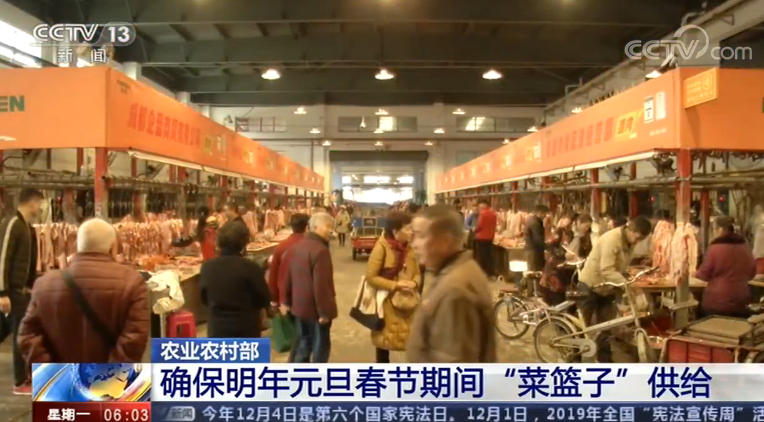 央視網(wǎng)消息:農(nóng)業(yè)農(nóng)村部昨天(1日)部署,將多措并舉,確保明年元旦、春節(jié)和“兩會”期間豬肉等“菜籃子”產(chǎn)品供給。