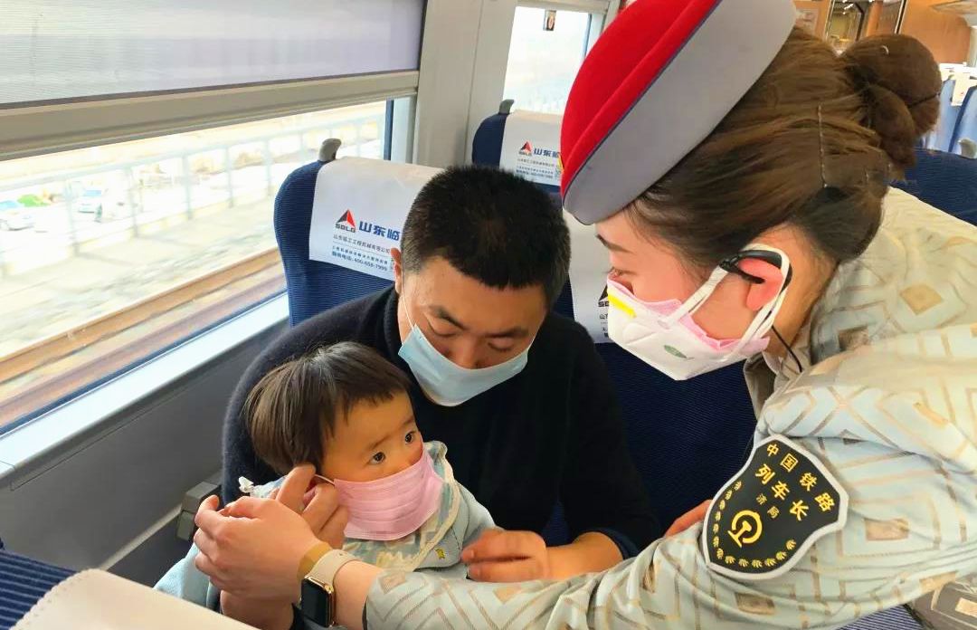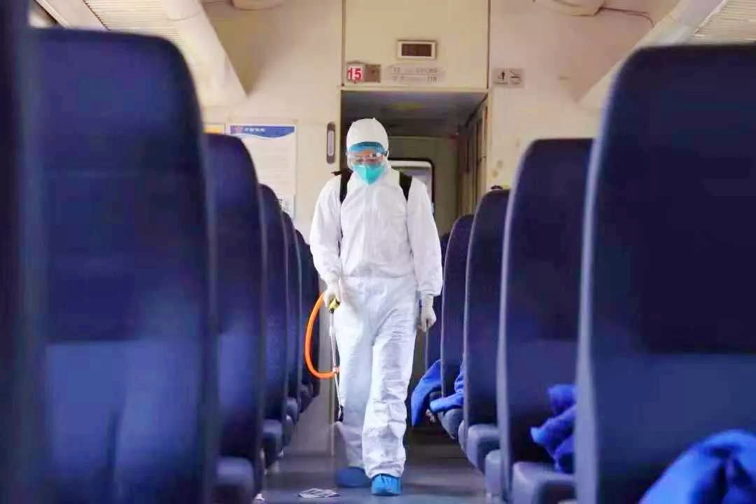 中國(guó)鐵路濟(jì)南局集團(tuán)有限公司青島客運(yùn)段團(tuán)員青年在值乘中,做好車輛消毒、體溫監(jiān)測(cè)及重點(diǎn)旅客幫扶工作。
