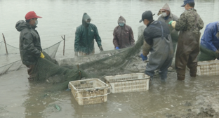 “起網(wǎng)啰!”2月10日,在武漢市東西湖區(qū)漁水情生態(tài)漁業(yè)養(yǎng)殖基地,十幾名工人齊聲吆喝,收網(wǎng)抓魚。