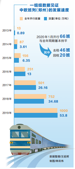 13班、87班、156班、251班、501班、752班、1000班,自2013年7月18日開行以來,中歐班列(鄭州)一年一個飛躍,助推河南進一步擴大對外開放。