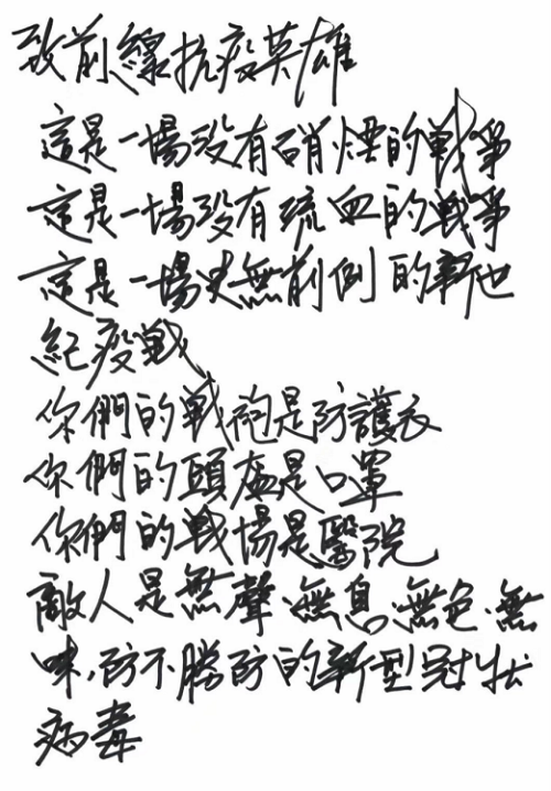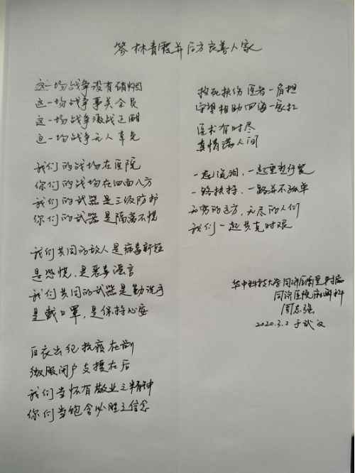 看到這封青霞手書(shū),同濟(jì)醫(yī)院麻醉科的周志強(qiáng)醫(yī)生,也寫(xiě)了一首詩(shī),作為回應(yīng)。