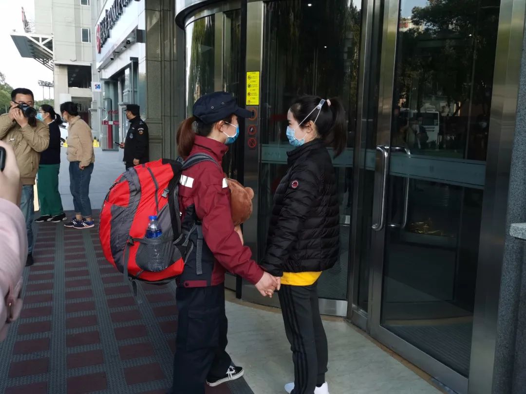 和隊(duì)員們相處多日的酒店經(jīng)理、廚師、保安都來送行。在山東醫(yī)療隊(duì)駐地,50多歲的保安大哥也舍不得這群和自己孩子一般大的年輕人。