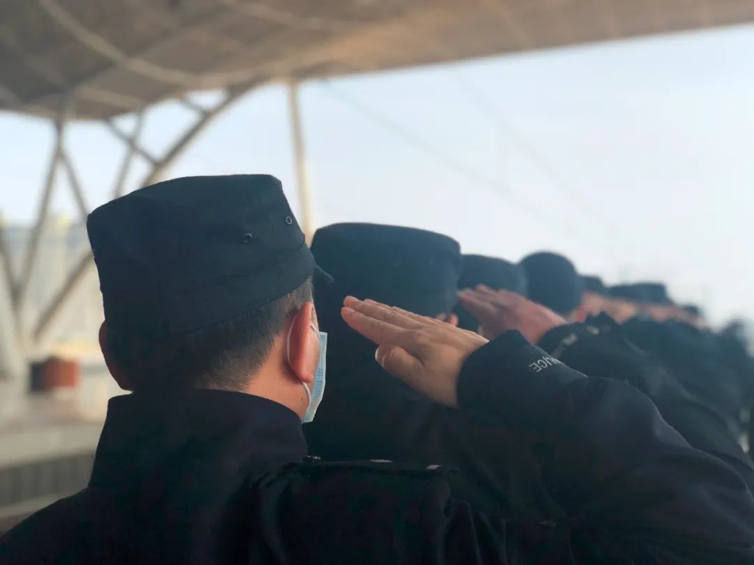 執(zhí)勤特警向離漢醫(yī)療隊(duì)敬禮致意