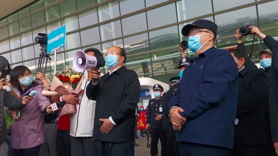 武漢市副市長劉子清:同時(shí)我在這里誠摯地邀請大家在摘下口罩,春暖花開,我們再次歡迎天津醫(yī)療隊(duì)的同志們、兄弟姐妹們,謝謝!