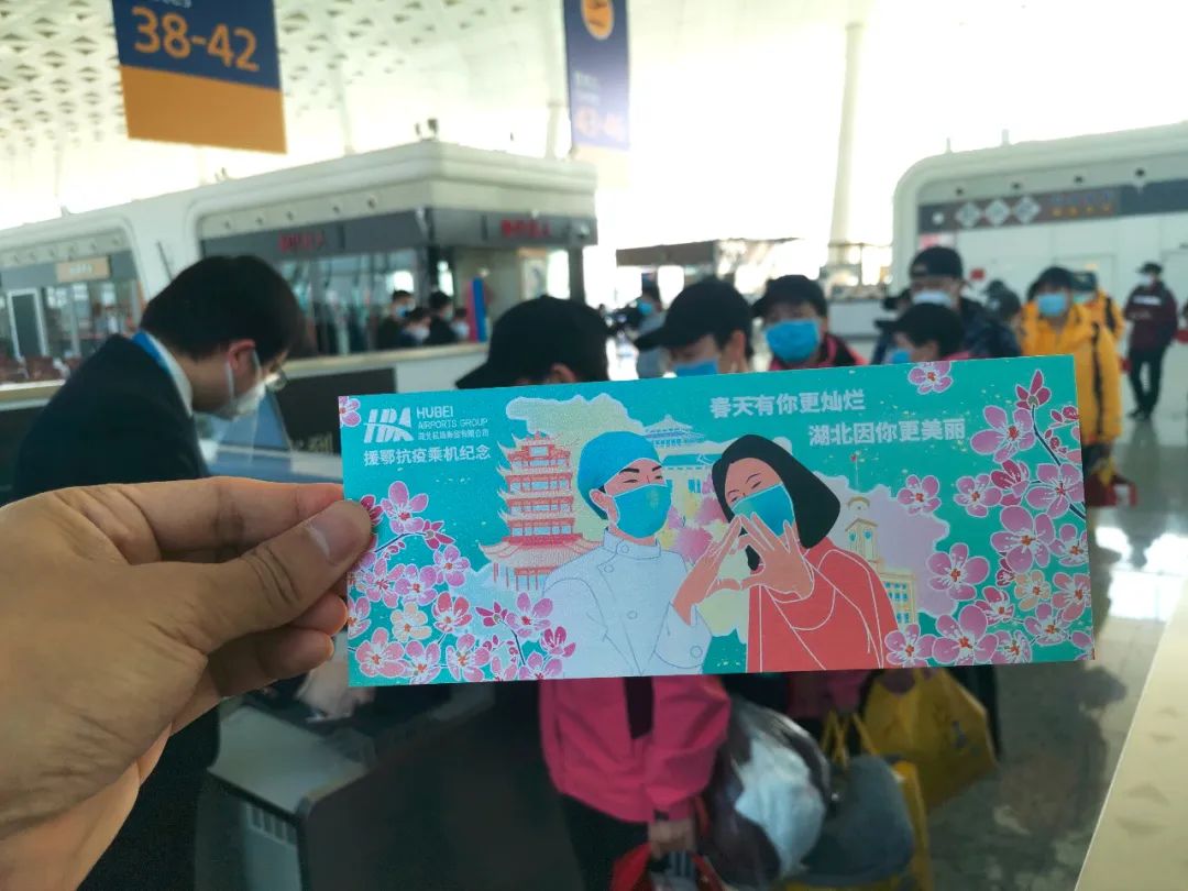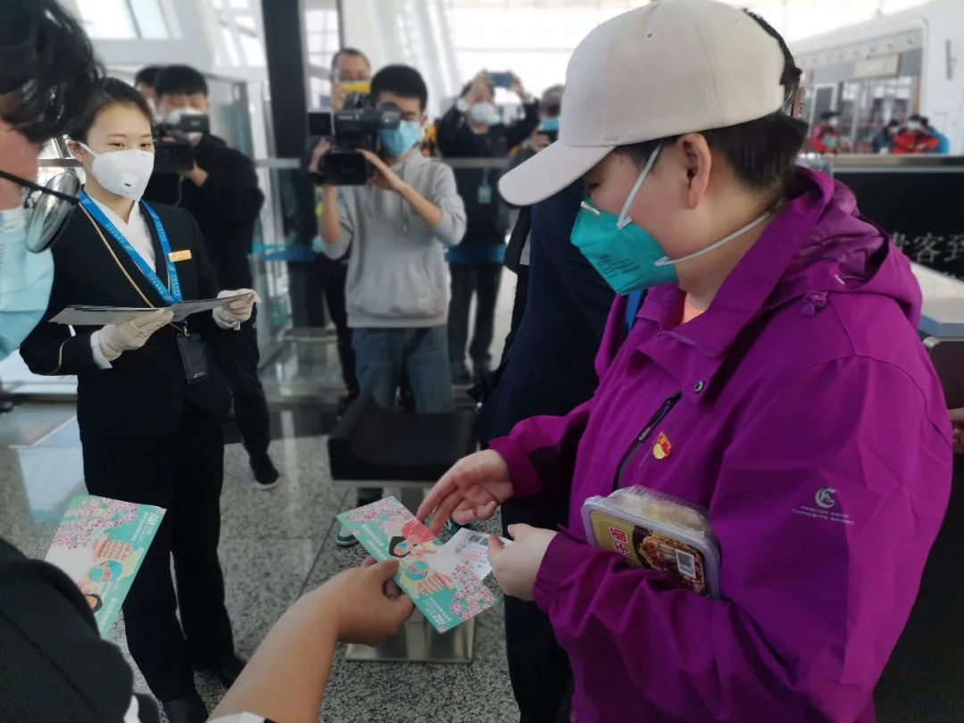 南方航空工作人員:這是我們準(zhǔn)備的小禮物,愛心登機(jī)牌,送給醫(yī)護(hù)人員的,留作紀(jì)念的……
