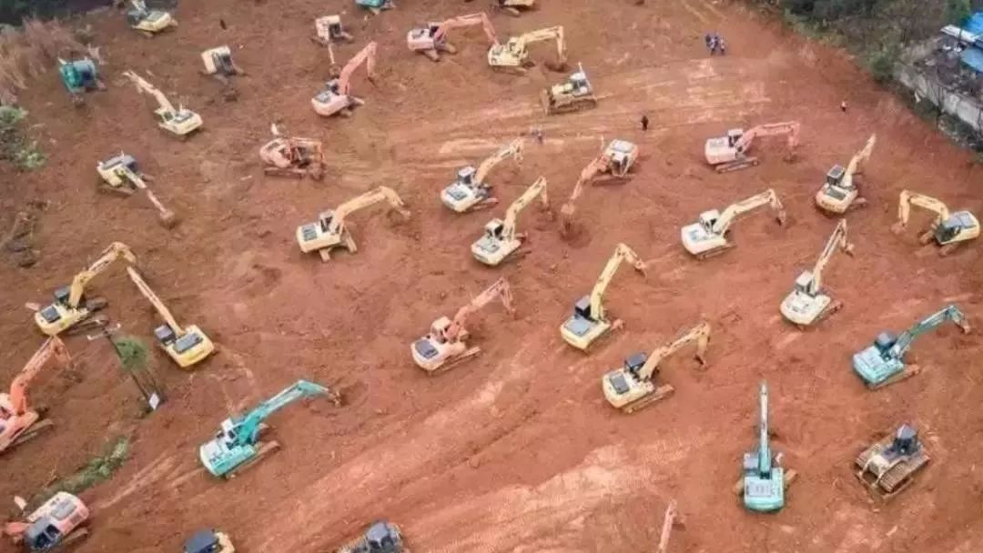 1月24日除夕 第1天 上百臺(tái)挖機(jī)抵達(dá)火神山醫(yī)院現(xiàn)場,開始土地平整