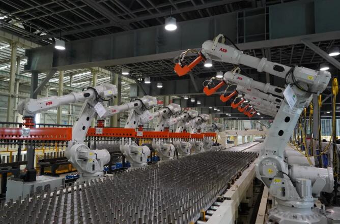 遠大可建的智能化車間零部件生產(chǎn)線基本實現(xiàn)了機器人生產(chǎn),機器人正在為不銹鋼芯板制管