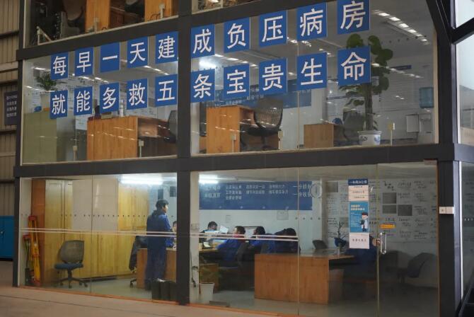 “早一天建成負壓病房,能多救五條寶貴生命”的標語高懸生產(chǎn)車間,全體人員爭分奪秒進行生產(chǎn)