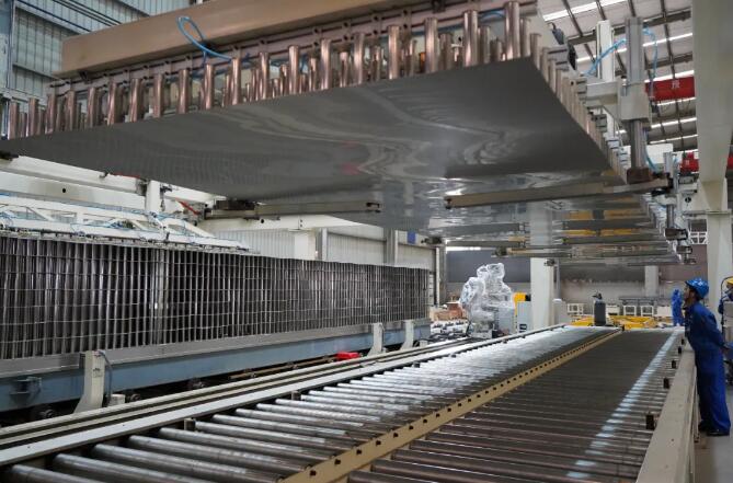 記者:“我們現(xiàn)在在遠大可建預制加工車間,這里的原材料生產(chǎn)線都由智能機器人操作,負壓隔離病房的所有部件全部在車間完成預制,所有生產(chǎn)線滿負荷生產(chǎn)!