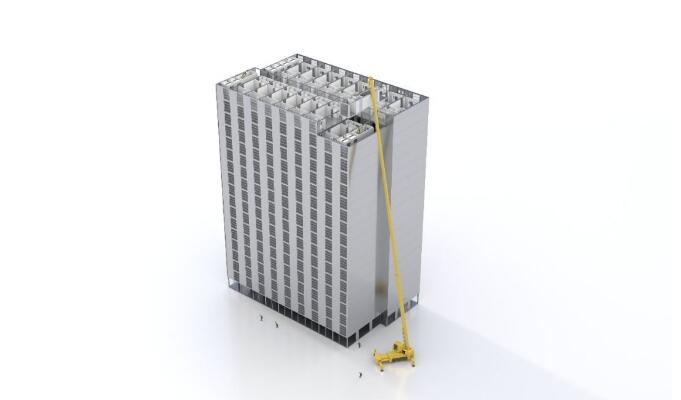 張賢銘:“隨著疫情的發(fā)展,他們可以自由地、靈活地調(diào)配他們的負壓病房的資源。這一次的醫(yī)院是一層樓,之后是可以增層的,可以再加5層、8層。我們在建筑上面就預埋了管子,上下水和上下空氣還有電的整個管道,都是預留在第1層的,所以它就像插積木一樣。除了結構連接,另外我們有垂直交通模塊,加樓梯加電梯,而且電梯還得很大,移動病床可以進得去。我們工廠不斷在備貨,所以任何地方需要,就像集裝箱一樣直接拉過去。”