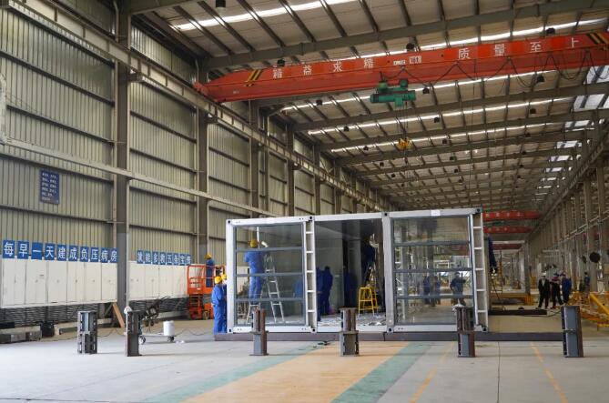 遠大可建科技有限公司生產(chǎn)主管青林:“在早一天建成負壓病房就能多救5條生命的號召下,全體成員日以繼夜地進行預組裝,到達安裝地點后展開集裝箱,只需要簡單的拼裝,就會變成我們的一個建筑主體!