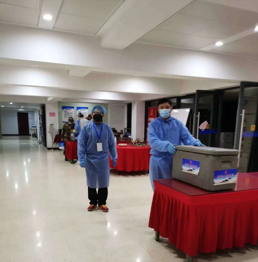 空曠整潔的樓道及辦公室經(jīng)過一夜休整,靜靜地等著喧囂時(shí)刻的到來。在就餐區(qū),我匆匆吃完早餐,趕緊找好合適的洗手衣和面部防護(hù)貼,到更衣區(qū)更換洗手衣和內(nèi)衣褲。在這里我們需要用接近40分鐘的時(shí)間穿戴好進(jìn)紅區(qū)的防護(hù)裝備。為了達(dá)到“零感染”的要求,每個(gè)人都認(rèn)真做好每一個(gè)細(xì)節(jié),都互相監(jiān)督提醒對(duì)方。穿戴完畢,我的同事劉雙林教授為我寫上了名字和單位名稱。我們揮揮手,打開了緩沖間的大門進(jìn)入了紅區(qū)。