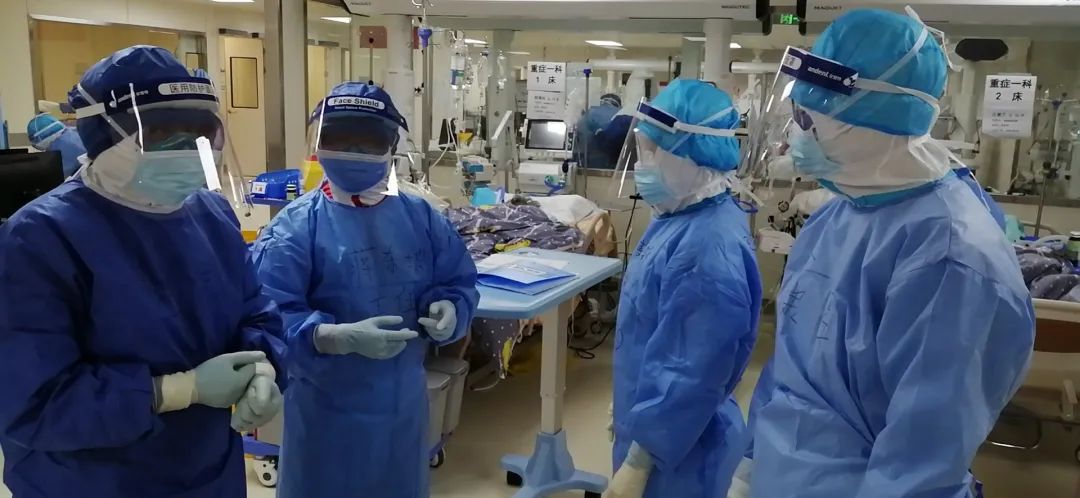 這時(shí)劉娟教授也進(jìn)來了,在蔣主任的帶領(lǐng)下,我們?cè)俅螌?duì)所有病人進(jìn)行重新查房,調(diào)整醫(yī)囑,完成床旁交班,同時(shí)安排三個(gè)恢復(fù)患者轉(zhuǎn)普通病房康復(fù),再換三個(gè)危重患者進(jìn)來搶救。