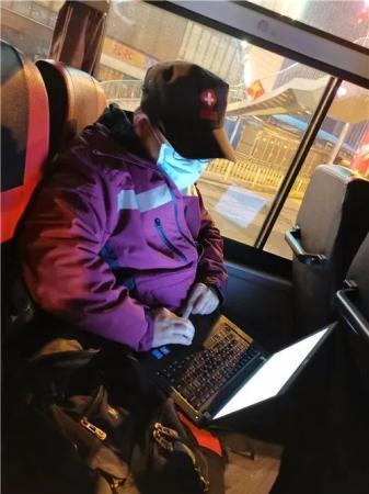 隊(duì)員在回賓館車(chē)上查詢(xún)應(yīng)急數(shù)據(jù)