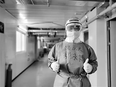 來自空軍軍醫(yī)大學(xué)的郭永博先期隨醫(yī)療隊支援武昌醫(yī)院,后轉(zhuǎn)至火神山醫(yī)院繼續(xù)戰(zhàn)斗。