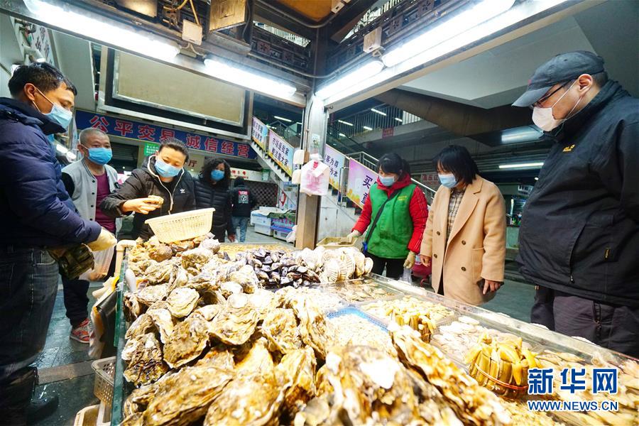 在北京市豐臺區(qū)盧溝橋鄉(xiāng)岳各莊批發(fā)市場,顧客在選購海產(chǎn)品(3月26日攝)。新華社發(fā)(趙智和 攝)