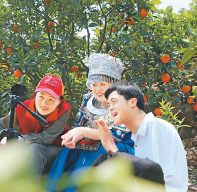現(xiàn)場(chǎng)試吃是少不了的。陳茲方坐在地上,一只腳握住一顆橙子,另一只腳握住水果刀,熟練地將掛在樹上的橙子削去皮!芭⑾氤詡愅,又擔(dān)心果汁太多弄花了妝,怎么辦?別擔(dān)心,我有妙招!”王玲拿出勺子,向網(wǎng)友們展示優(yōu)雅的吃法。