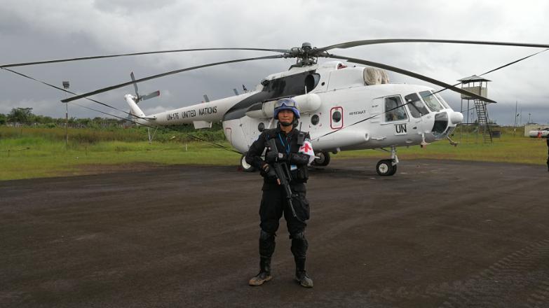 2017年3月,經(jīng)過層層選拔,普興有入選中國第五支赴利比里亞維和警察防暴隊,成為一名戰(zhàn)斗隊員兼衛(wèi)生員,隨隊伍到萬里之外的利比里亞開展為期一年的維和防暴任務(wù)。作為防暴隊的一員,普興有始終堅守在自己的崗位,越是艱難險阻,越是沖鋒在前。