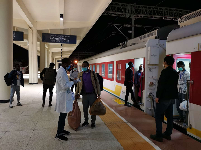 不僅如此,在疫情期間,亞吉鐵路還發(fā)揮自身運(yùn)量大、效率高的優(yōu)勢(shì),積極為埃塞提供應(yīng)急服務(wù)。3月份,在埃塞出現(xiàn)疫情之后,一批在埃塞俄比亞?wèn)|部城市德雷達(dá)瓦的大學(xué)生急需集中返回首都亞的斯。亞吉鐵路科學(xué)籌劃,在保障車輛清潔衛(wèi)生的情況下,迅速開(kāi)行2列臨時(shí)旅客列車,將1267名大學(xué)生迅速撤離德雷達(dá)瓦。