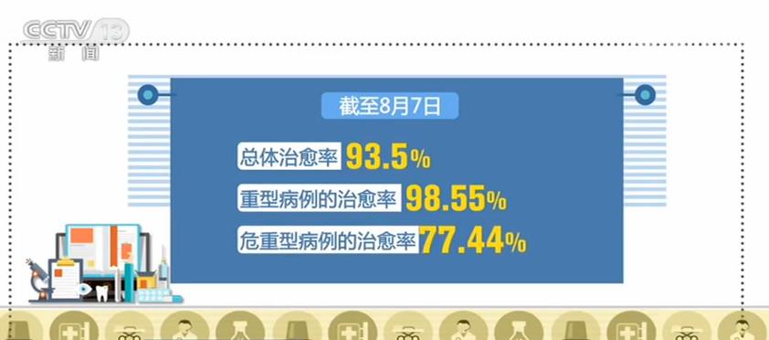 截至8月7日,全國(guó)新冠肺炎總體治愈率達(dá)到93.5%,重型病例的治愈率達(dá)到98.55%,危重型的治愈率達(dá)到77.44%。
