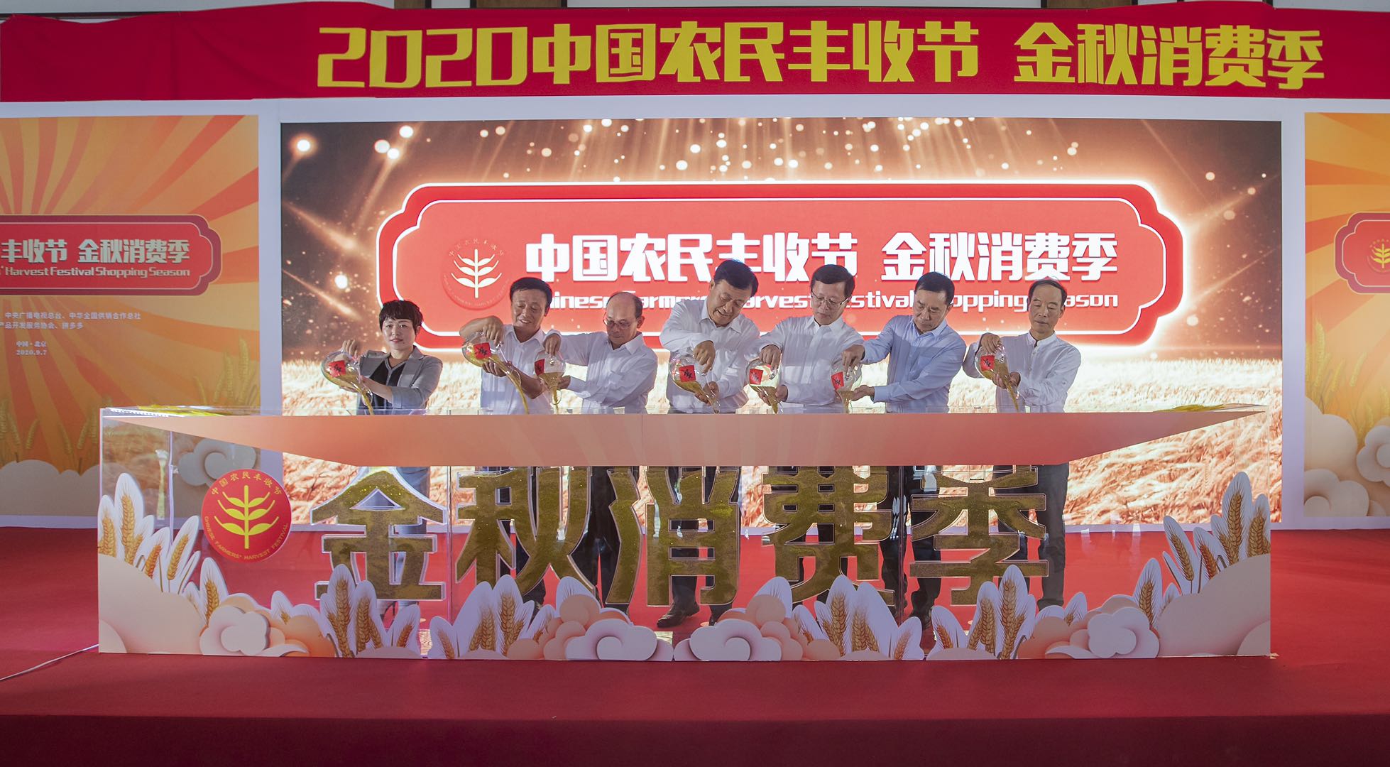 9月7日,由農(nóng)業(yè)農(nóng)村部、中央廣播電視總臺(tái)、中華全國(guó)供銷合作總社聯(lián)合發(fā)起的2020年中國(guó)農(nóng)民豐收節(jié)金秋消費(fèi)季在北京啟動(dòng)。農(nóng)業(yè)農(nóng)村部副部長(zhǎng)于康震、中央廣播電視總臺(tái)副臺(tái)長(zhǎng)蔣希偉、中華全國(guó)供銷合作總社理事會(huì)副主任鄒天敬,與三位農(nóng)民代表共同開啟“豐收門”。