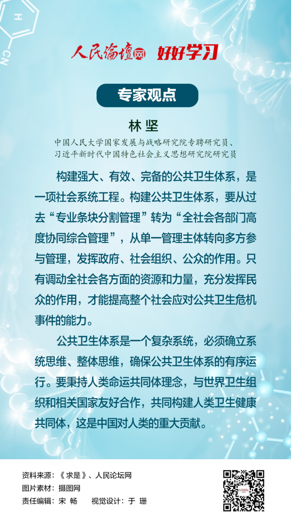 在實(shí)現(xiàn)“兩個(gè)一百年”奮斗目標(biāo)的歷史進(jìn)程中,發(fā)展衛(wèi)生健康事業(yè)始終處于基礎(chǔ)性地位,同國(guó)家整體戰(zhàn)略緊密銜接,發(fā)揮著重要支撐作用。習(xí)近平總書記在專家學(xué)者座談會(huì)上指出,這次新冠肺炎疫情防控斗爭(zhēng)表明,我國(guó)公共衛(wèi)生服務(wù)體系、醫(yī)療服務(wù)體系、醫(yī)療保障體系、藥品供應(yīng)保障體系以及重大疫情防控與應(yīng)急管理體系,總體上是有效的,但也存在一些薄弱環(huán)節(jié)。人民安全是國(guó)家安全的基石。突發(fā)急性傳染病往往傳播范圍廣、傳播速度快、社會(huì)危害大,是重大的生物安全問題。我們要強(qiáng)化底線思維,增強(qiáng)憂患意識(shí),時(shí)刻防范衛(wèi)生健康領(lǐng)域重大風(fēng)險(xiǎn)。如何進(jìn)一步完善我國(guó)重大疫情防控體制機(jī)制、健全國(guó)家公共衛(wèi)生體系、增強(qiáng)應(yīng)對(duì)突發(fā)重大公共衛(wèi)生事件的能力?習(xí)近平總書記從八個(gè)方面為我們指明了方向,人民論壇網(wǎng)和您一起學(xué)習(xí)。