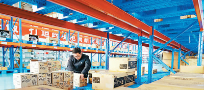 河北省唐山市充分發(fā)揮面向東北亞和輻射京津冀兩大區(qū)位優(yōu)勢,建設跨境電子商務綜合試驗區(qū),取得良好效果。圖為在唐山京唐港區(qū)保稅物流中心,跨境電商企業(yè)工作人員正整理貨物。