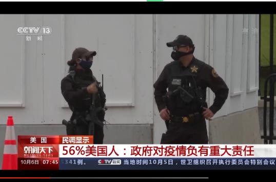 據(jù)美聯(lián)社10月5日報道,美國最新一項民調(diào)結(jié)果顯示,56%的美國人認為,美國長時間深陷于新冠肺炎疫情危機,美國政府對這一局面負有重大責(zé)任。