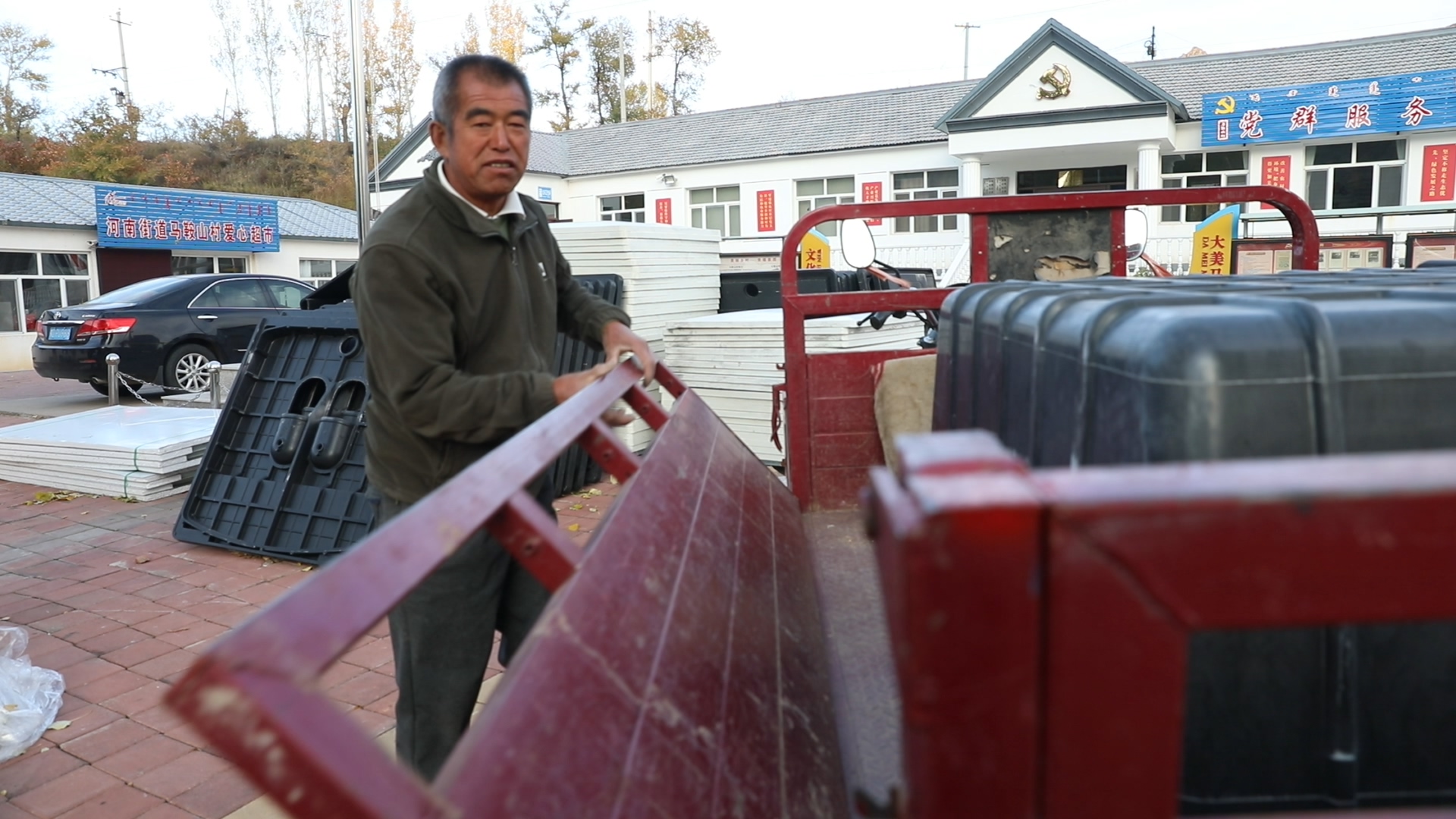 △近日,老鄭在忙著幫村民運(yùn)送衛(wèi)生廁所設(shè)備。