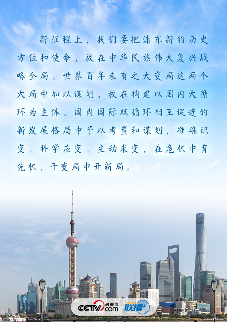 新征程上,如何抓住機遇、乘勢而上,推動浦東開發(fā)開放不斷展現(xiàn)新氣象?央視網(wǎng)《聯(lián)播+》特梳理總書記重要講話,與您一起學(xué)習(xí)體會。