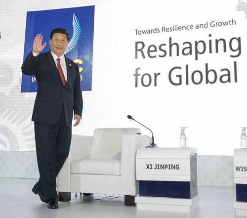 2013年10月7日,國(guó)家主席習(xí)近平在印度尼西亞巴厘島出席亞太經(jīng)合組織工商領(lǐng)導(dǎo)人峰會(huì),并發(fā)表《深化改革開放共創(chuàng)美好亞太》的重要演講。新華社記者 李學(xué)仁 攝