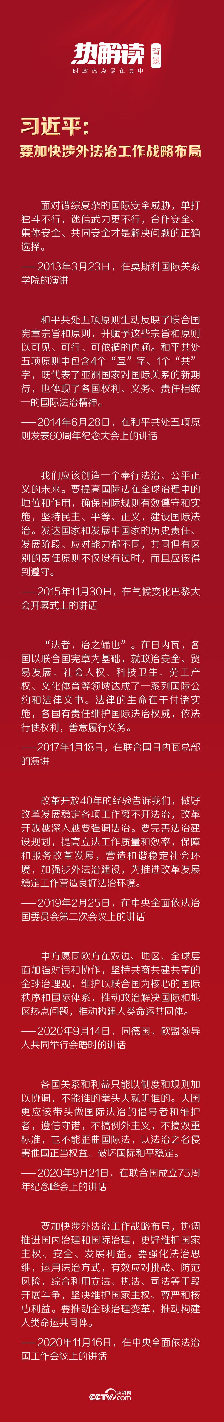 《熱解讀》注意到,早在2019年2月25日,習(xí)近平總書記主持召開中央全面依法治國委員會第二次會議時,就已明確要求加強涉外法治建設(shè),為推進改革發(fā)展穩(wěn)定工作營造良好法治環(huán)境。