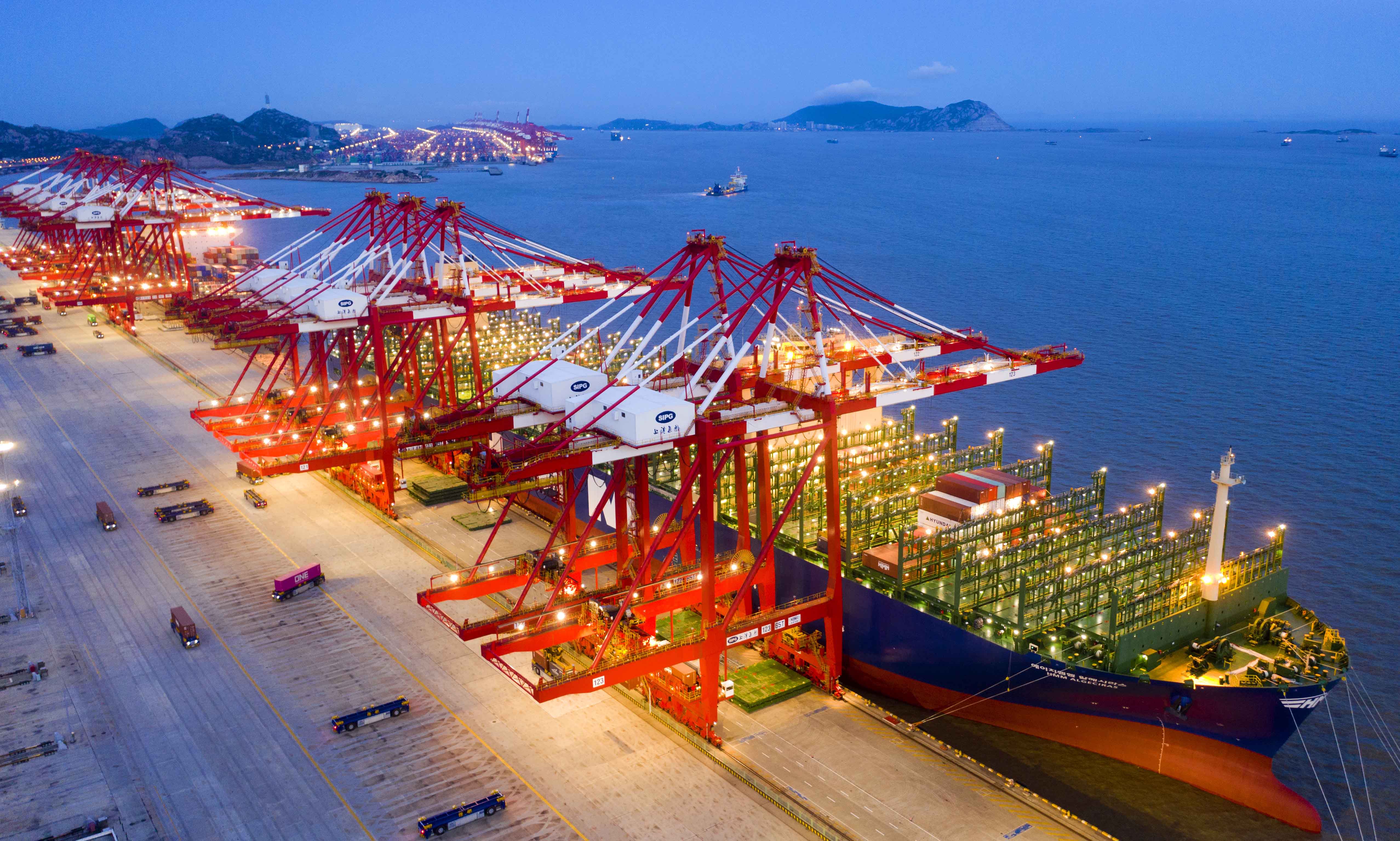 △燈火通明的上海洋山深水港自動(dòng)化碼頭