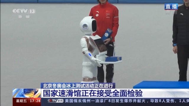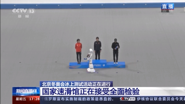 總臺(tái)記者 何暢:為什么要用機(jī)器人進(jìn)行頒獎(jiǎng),實(shí)際上一方面是考慮到在疫情防控常態(tài)化的這種背景下,這是一種科技防御的有益創(chuàng)新和實(shí)踐。另外一方面,采用這種智能機(jī)器人頒獎(jiǎng)的方式,也是國(guó)家速滑館一直在致力于打造的智慧場(chǎng)館的一處縮影。