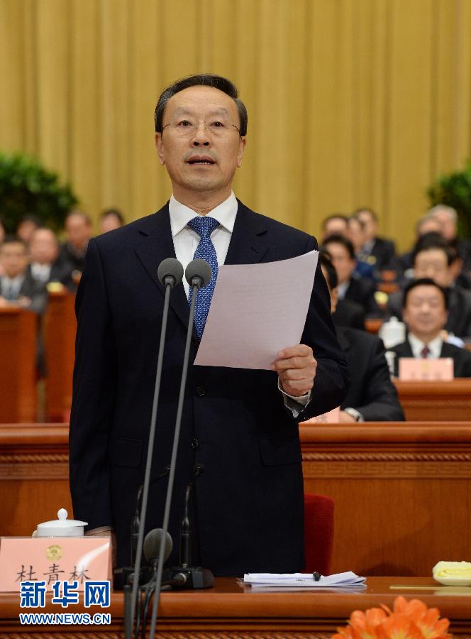 3月3日,中國人民政治協(xié)商會議第十二屆全國委員會第二次會議在北京人民大會堂開幕。杜青林主持開幕會。 新華社記者馬占成攝