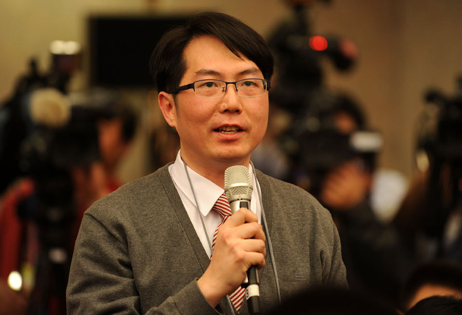 3月2日,全國政協(xié)十二屆二次會(huì)議新聞發(fā)布會(huì)在人民大會(huì)堂一層新聞發(fā)布廳舉行。圖為澳門澳亞衛(wèi)視記者提問。新華網(wǎng)/中國政府網(wǎng) 翟子赫 攝
