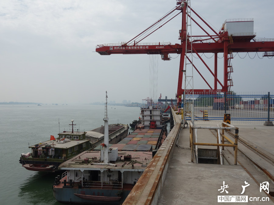 在荊州鹽卡港區(qū),記者看到港口秩序井然,大貨車將集裝箱送往碼頭,大型器械又將一個個集裝箱運送到貨船上,有關(guān)負責人詳細介紹了港區(qū)的建設(shè)情況和年吐吞量。