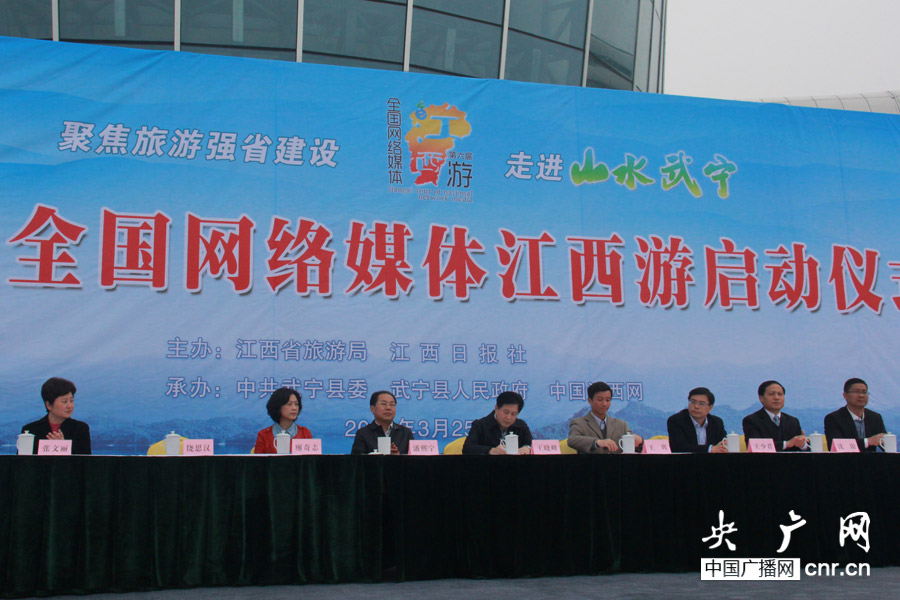 央廣網(wǎng)3月25日消息(記者劉千里)3月25日上午,“聚焦旅游強省建設——山水武寧·第六屆全國網(wǎng)絡媒體江西游”大型采風活動在江西九江武寧縣啟動。江西省旅游局局長王曉峰,江西日報社社長王暉出席啟動儀式并講話。九江市委常委、市委宣傳部部長潘熙寧宣布第六屆全國網(wǎng)絡媒體江西游正式啟動,并向媒體代表授旗。九江市副市長廖奇志在啟動儀式上講話。武寧縣委書記沈陽致歡迎辭。