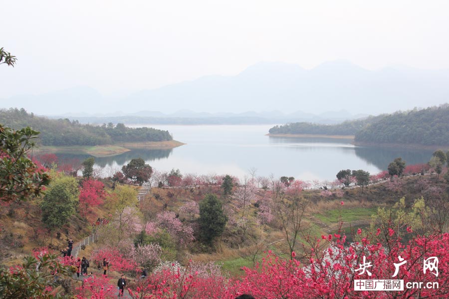 武寧花源谷景區(qū)桃花島上桃花盛開(央廣網(wǎng)記者 劉千里 攝)