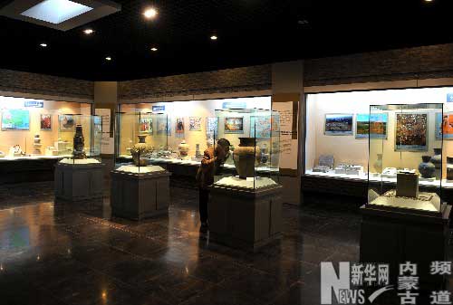 4月16日,一位參觀者在盛樂博物館觀看出土于盛樂古城的文物