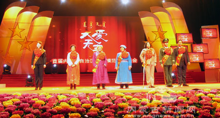| 中廣網(wǎng)呼和浩特12月29日消息 12月28日晚,首屆內(nèi)蒙古道德模范頒獎(jiǎng)晚會(huì)《大愛無(wú)聲》在烏蘭恰特大劇院舉行。由自治區(qū)黨委宣傳部、文明辦、總工會(huì)、團(tuán)委、婦聯(lián)組織開展的首屆內(nèi)蒙古道德模評(píng)選表彰活動(dòng),經(jīng)報(bào)名推薦、審核公示、群眾投票和評(píng)委評(píng)選等程序,李素琴等34名同志榮獲“全區(qū)道德模范”,張連云等109名同志榮獲“全區(qū)道德模范提名獎(jiǎng)”。