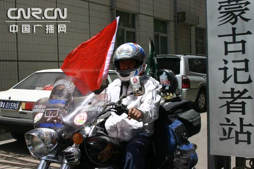 中廣網(wǎng)呼和浩特5月28日消息(記者鄭穎 實(shí)習(xí)記者張璐)62歲的東北漢子趙振寬,以他驚人的毅力和濃厚的民族情結(jié),在整整一年的時(shí)間里騎摩托車踏遍了祖國(guó)的各個(gè)省市,全力宣傳。一路上,他不收媒體和政府的一分贊助,為的就是不讓自己的行為和動(dòng)機(jī)變質(zhì)。在最艱難的時(shí)候,他只能吃野草、喝泥水、風(fēng)餐露宿,但從不抱怨。