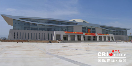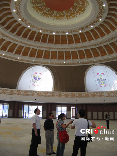 國(guó)際會(huì)議展覽中心正在為內(nèi)蒙古自治區(qū)成立60周年大慶進(jìn)行最后的收尾工作。(記者 王猛攝影)
