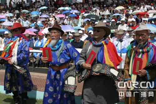 中廣網(wǎng)呼和浩特7月25日消息(記者鄭穎 實(shí)習(xí)記者王巖)七月的草原水草豐美,牛羊肥壯。25日,成千上萬(wàn)的蒙古族牧民穿著節(jié)日的盛裝,不顧旅途的遙遠(yuǎn),云集到烏蘭察布市四子王旗格根塔拉大草原。這里,人流縱橫,牧馬嘶鳴,內(nèi)蒙古自治區(qū)第十八屆旅游那達(dá)慕暨烏蘭察布市第三屆那達(dá)慕大會(huì)拉開(kāi)了帷幕。