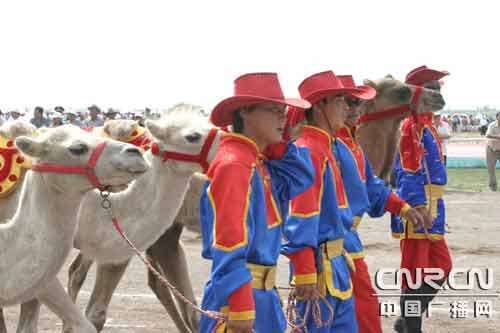 開(kāi)幕式上駱駝馬戲表演團(tuán)入場(chǎng)